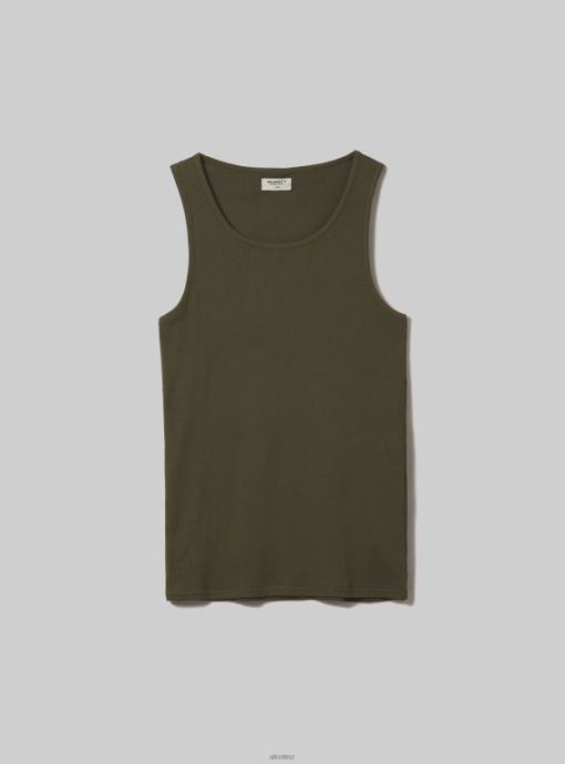 Canotta basic in cotone in tinta unita in rib. La taglia in foto e una L. Altezza modello: 186 cm.