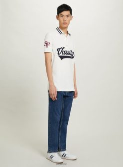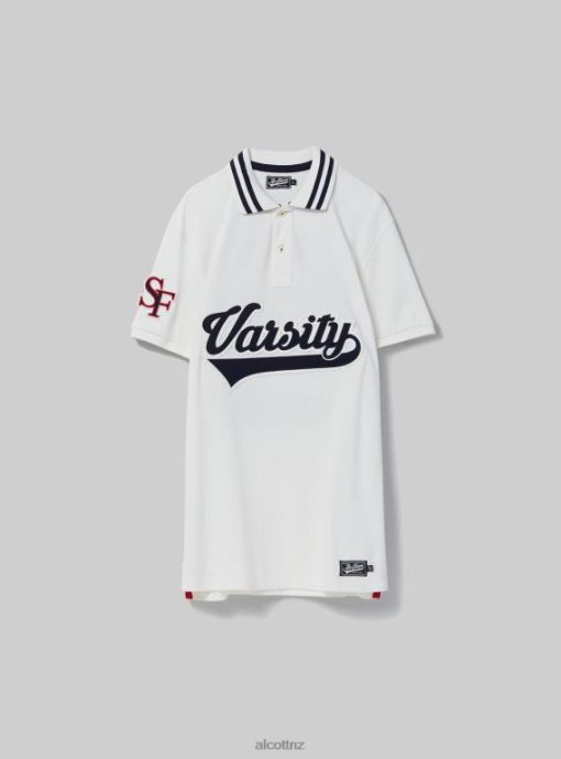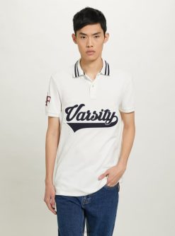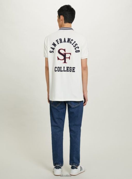 Alcott Men Cotton Polo Shirt With Varsity Patch JVFH1039 Clothing C0020 OFF WHITE