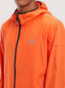 Lightweight windproof jacket with hood, plain colour with contrasting print. The size in the photo is L. Model height: 186 cm.
