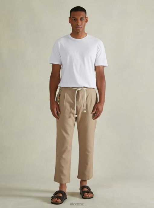 Alcott Men Linen-Blend Trousers With Drawstring Waist JVFH614 Clothing BG2 BEIGE MEDIUM