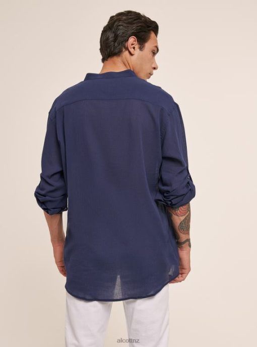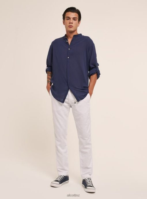 Alcott Men Long-Sleeved Cotton Shirt With Korean Collar JVFH750 Clothing WHITE