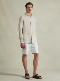 Shirt made of 100% linen in solid colour, long sleeves. The size in photo is a L. Model height: 186 cm.