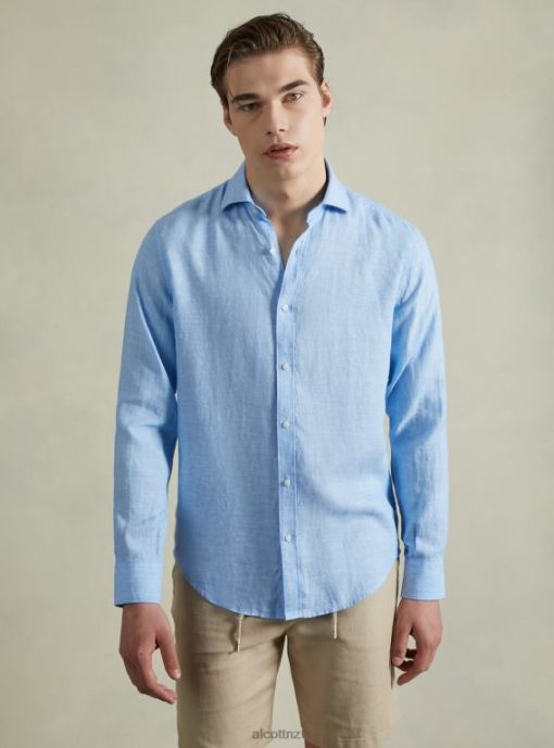 Alcott Men Long-Sleeved Pure Linen Shirt JVFH625 Clothing AZ3 AZURRE LIGHT