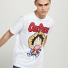 Short-sleeved T-shirt made of 100% cotton with One Piece License print. The size in photo is a L. Model height: 186 cm.