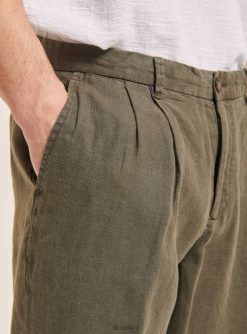 Alcott Men Pure Linen Trousers With Pleats JVFH975 Clothing C6603 KAKY