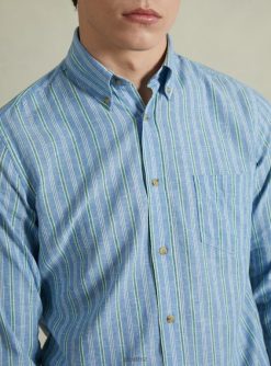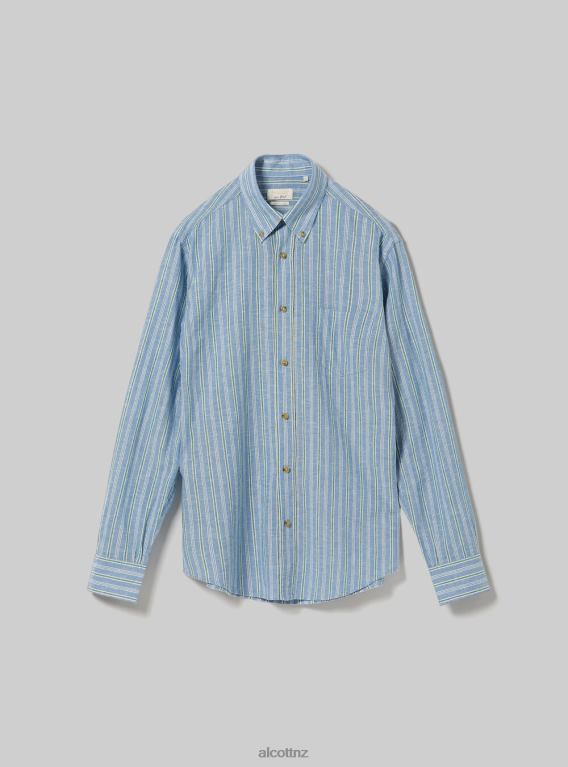 Alcott Men Striped Linen Blend Shirt JVFH698 Clothing AZURE
