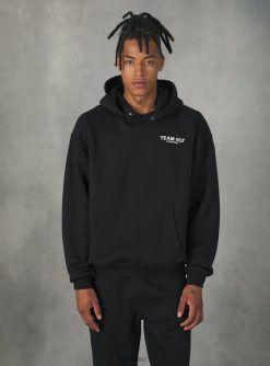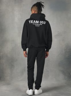 Hooded sweatshirt with front kangaroo pocket, plain with rib bottom hem and cuffs, Team 053 print. Matching trousers available. Fit: comfort fit. The size in photo is a L. Model height: 188 cm.