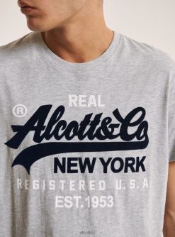 Alcott Men T-Shirt With Frontal Logo Printed JVFH932 Clothing BLACK