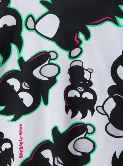 Short-sleeved T-shirt made from 100% cotton with an all over Badtz-Maru, Hello Kitty License print. Fit: crop fit. The size in photo is a S. Model height: 170 cm.