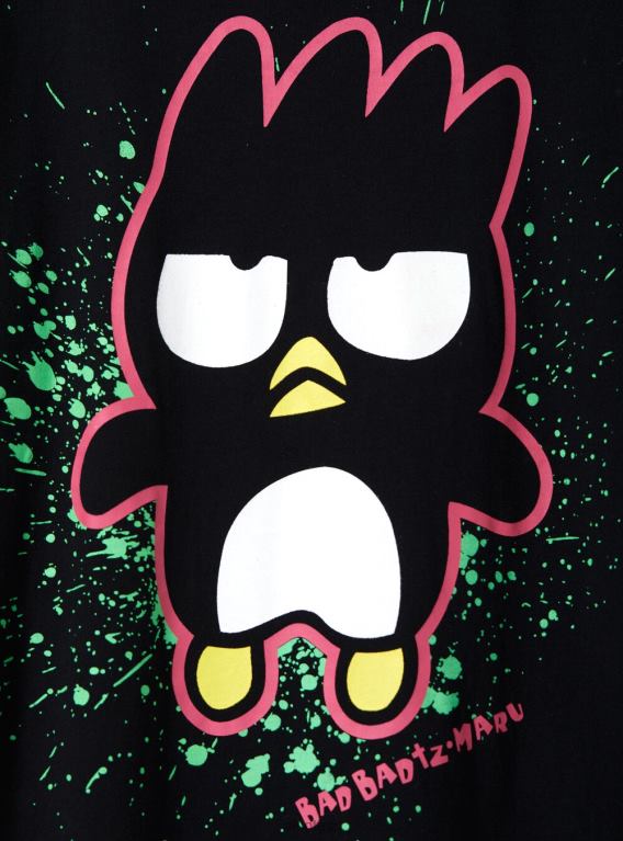 Short-sleeved T-shirt made from 100% cotton with Badtz-Maru, Hello Kitty License print. The size in photo is a S. Model height: 170 cm.