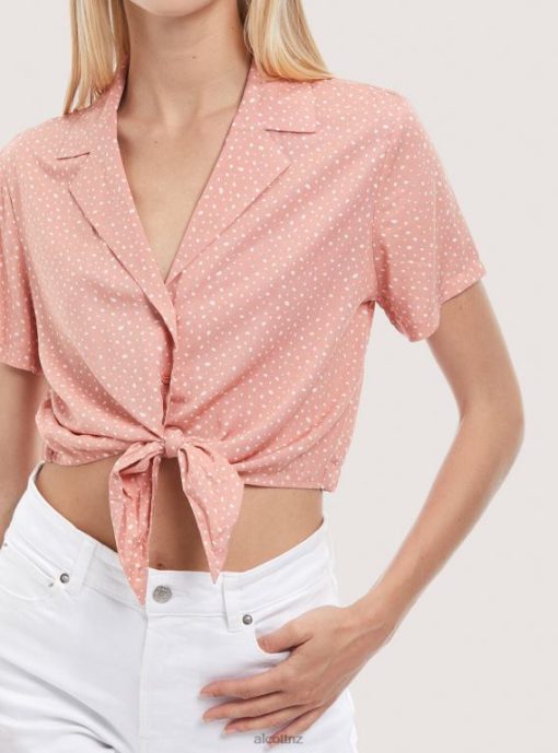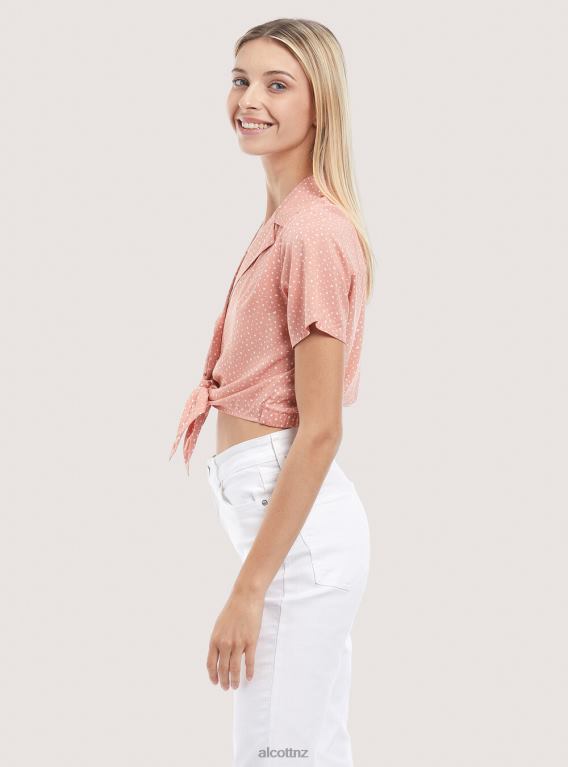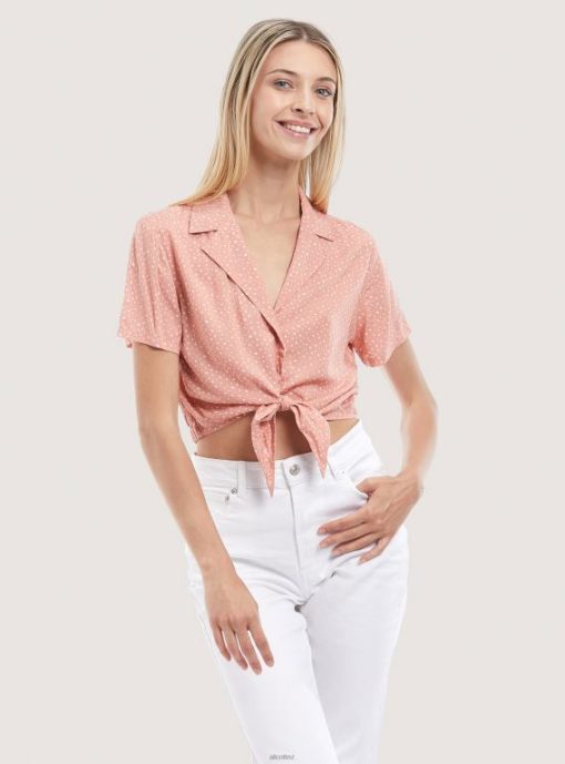 Camicia crop fit con nodo in vita, fantasia a pois. La taglia in foto e una S. Altezza modella: 175 cm.