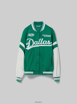 College-style bomber jacket with print and contrasting details. Snap button front closure. The size in photo is S. Model height: 175 cm.