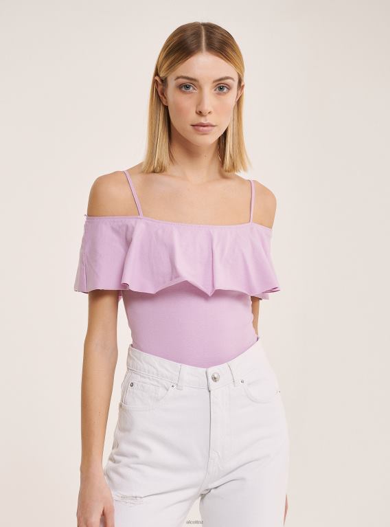 Alcott Women Cotton Bodysuit With Ruffles JVFH71 Clothing C2274 AZZURRE