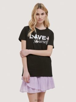 Alcott Women Cotton T-Shirt With Print JVFH196 Clothing BLACK