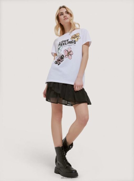 Alcott Women Cotton T-Shirt With Print JVFH355 Clothing BLACK