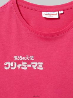 Short-sleeved T-shirt made of 100% cotton with Creamy License print. Fit: crop fir. The size in photo is a S. Model height: 175 cm.