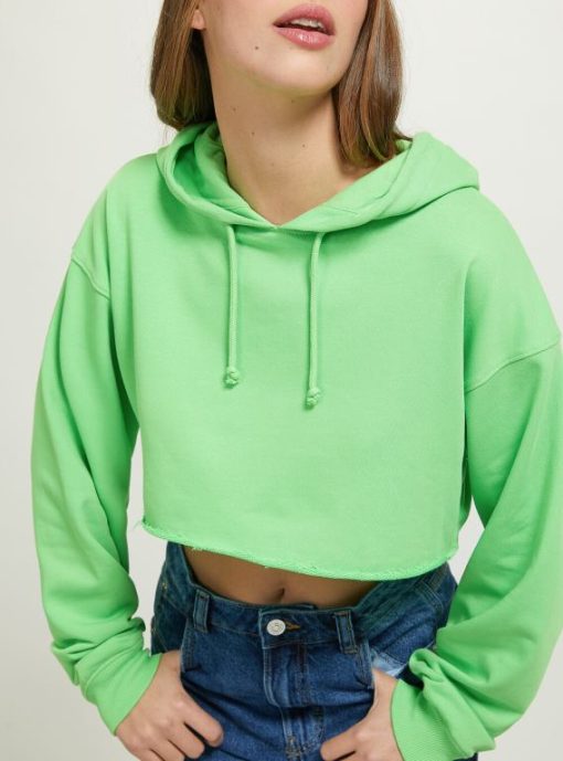Sweatshirt with adjustable hood with raw cut at hem, rib cuffs. Fit: crop fit. The size in photo is a S. Model height: 176 cm.