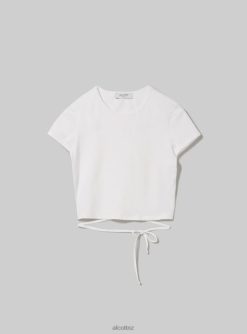 Cropped lace up t-shirt made of cotton with back neckline, in plain colour. Fit: crop fit. The size in photo is a S. Model height: 176 cm.