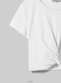 Plain cotton cropped t-shirt with knot on the front, fit: crop fit. The size in photo is a S. Model height: 175 cm. By choosing our cotton products, you are supporting our investment in Better Cotton’s Mission. This product is sourced through a mass balance system and it might not contain Better Cotton.