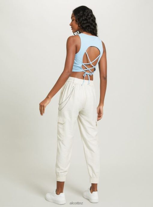 Alcott Women Lace Up Crop Top JVFH275 Clothing WH2 WHITE