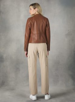 Leather-effect slim fit jacket with mandarin collar. Front pockets with zip. The size in the photo is a: S. Model height: 176 cm.