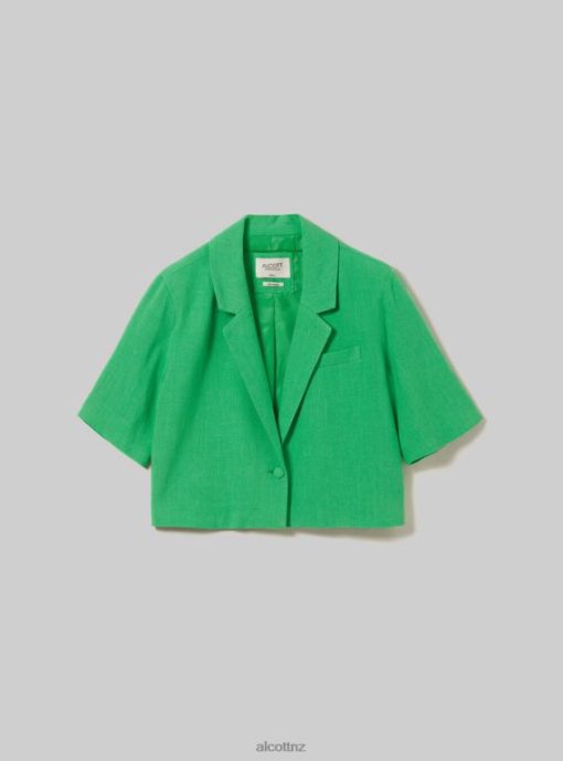 Alcott Women Linen Blend Cropped Blazer JVFH186 Clothing GN3 GREEN LIGHT