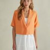 Alcott Women Linen Blend Cropped Blazer JVFH506 Clothing GN3 GREEN LIGHT