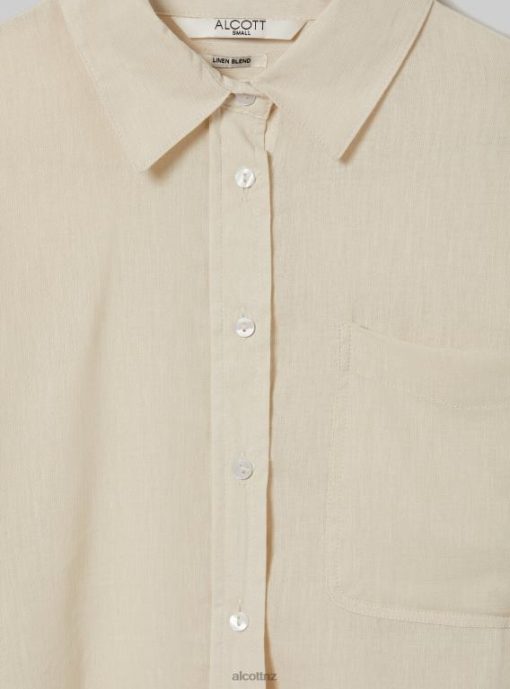 Alcott Women Linen Blend Shirt With Breast Pocket JVFH162 Clothing GA3 AQUA GREEN LIGHT