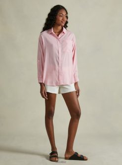 Alcott Women Linen Blend Shirt With Breast Pocket JVFH456 Clothing GA3 AQUA GREEN LIGHT