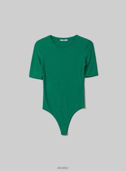 Ribbed short-sleeved bodysuit in plain cotton, tight and stretch fit. The size in the photo is a S. Model height: 177 cm.