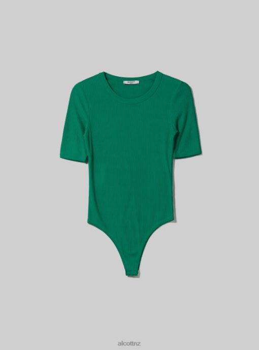 Alcott Women Ribbed Short-Sleeved Bodysuit JVFH74 Clothing BK1 BLACK