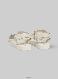 Sandali realizzati in gomma con chiusura a strappo in canvas, con patch.