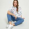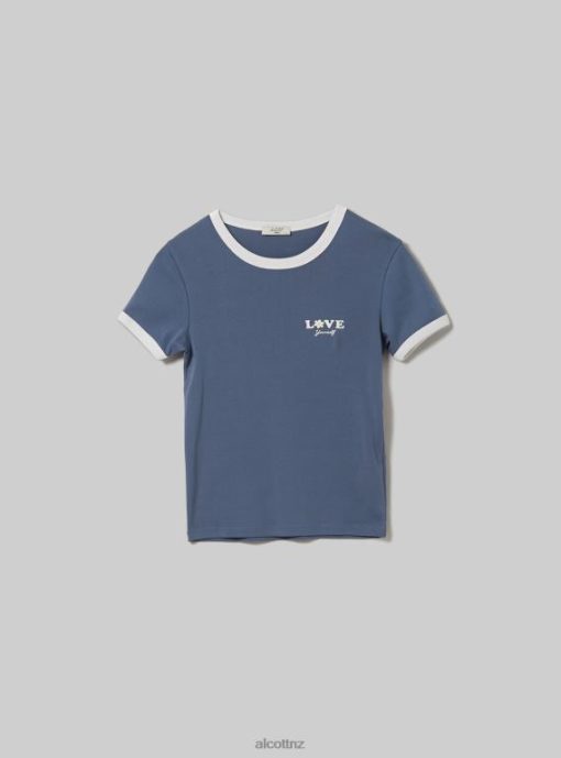 Alcott Women T-Shirt With Print And Contrasting Piping JVFH458 Clothing C4546 LILLAC