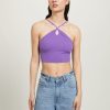 Top in rib in tinta unita con scollo incrociato, vestibilita: crop fit. La taglia in foto e una S. Altezza modella: 175 cm.